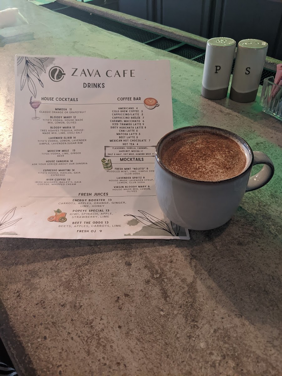 A warm blend of chocolate and milk, infused with a hint of cinnamon, often garnished with whipped cream or marshmallows.